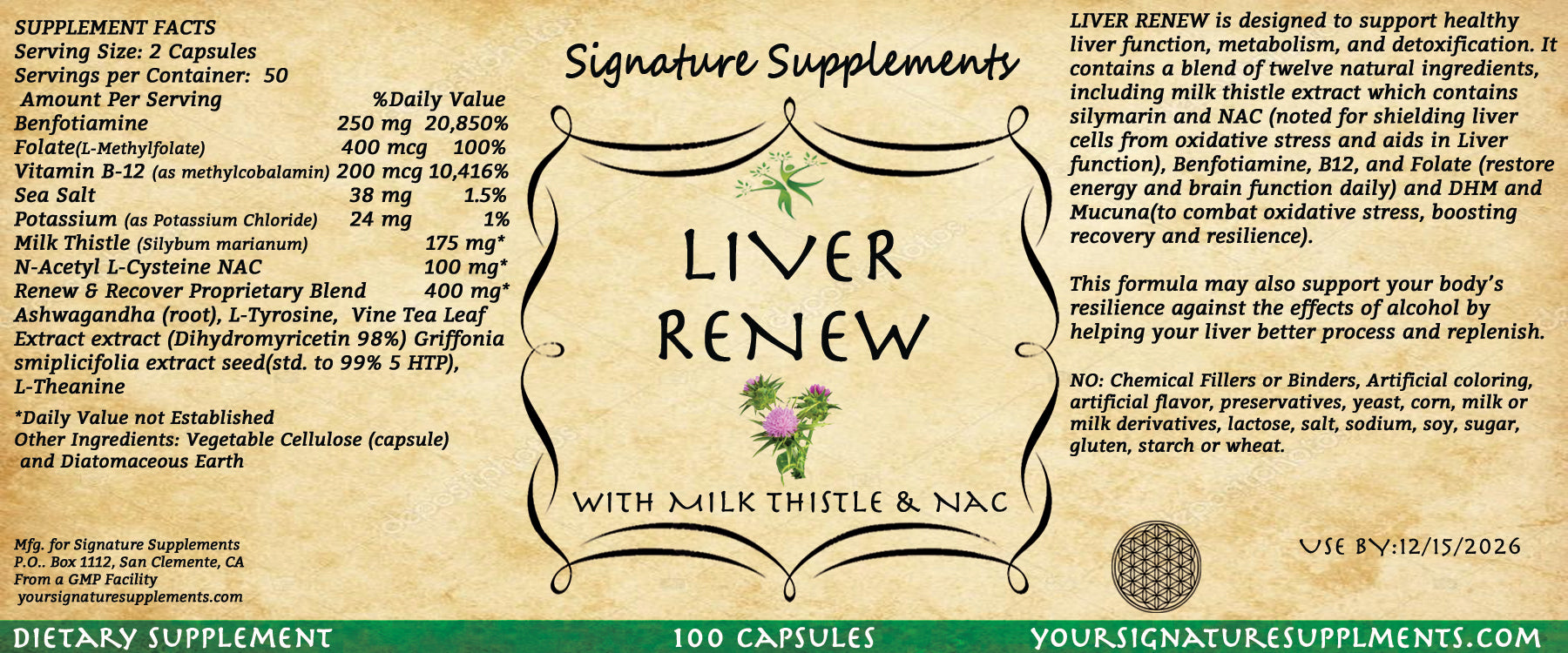 This supplement is designed to support healthy liver function, metabolism, and detoxification. It contains a blend of twelve natural ingredients, including milk thistle extract which contains silymarin and NAC (noted for shielding liver cells from oxidative stress and aids in Liver function), Benfotiamine, B12, and Folate(restore energy and brain function daily) and DHM and Mucuna(to combat oxidative stress, boosting recovery and resilience).